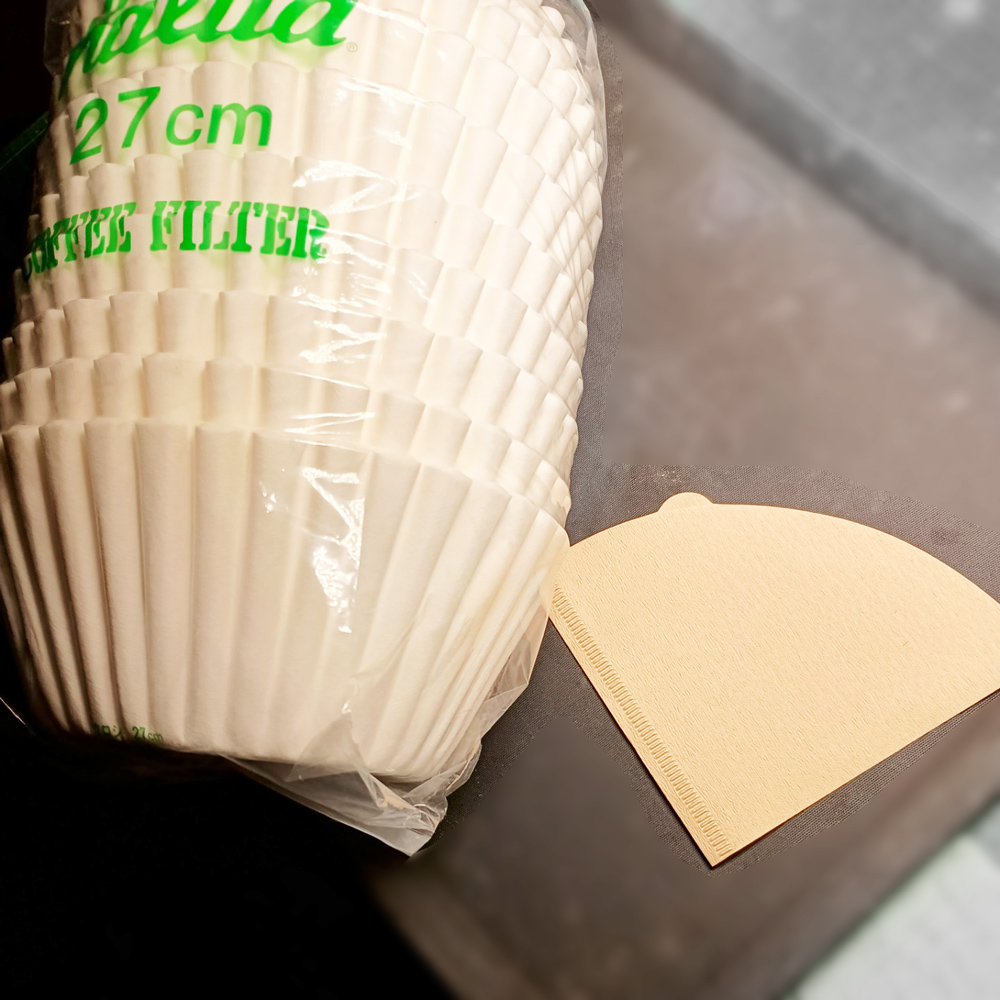 そこでペーパーの表面積が大きい業務用のもの、以前いづみや珈琲さんに伺った際に見たあのフィルター、お菓子のマドレーヌを包んでいる、あのアルミホイルのような形の、大きなひらひらした、あれが使えれば!となったわけです。