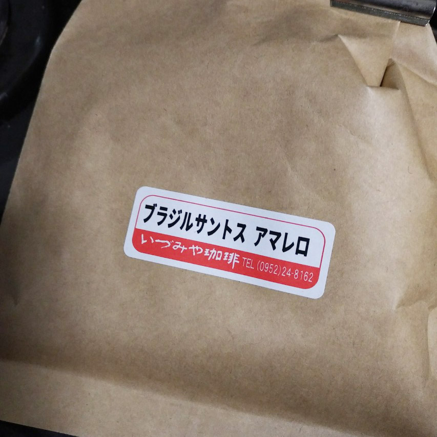 今日は、いづみや珈琲さんのブラジルサントス アマレロを・・・と思っておりましたら、豆が半分くらい。足りません。冷蔵庫の前でいろいろと悩んだのですが、今回は、ブラジルが入っているイノダコーヒさんのオリジナルブレンドを足してブレンドしました。1:1